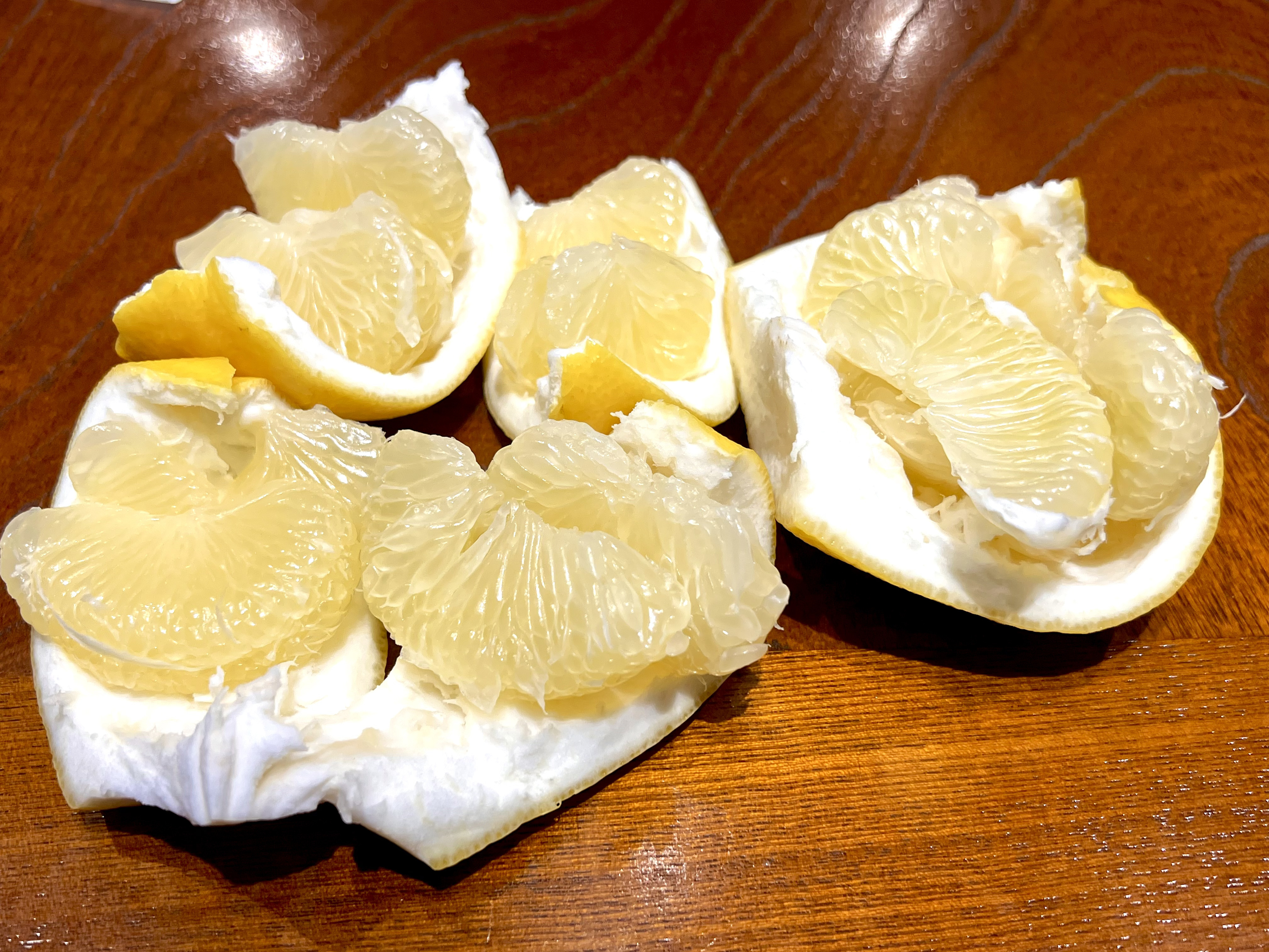 ふるさと納税の返礼品である、いちき串木野市のサワーポメロを食べようと皮を剥いていたところ妻が、
